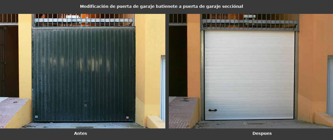 Sustitución de puerta de garaje batiente a puerta automatizada de garaje seccional.